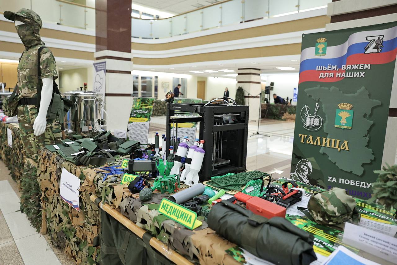 Мне очень хотелось показать эти изделия: маскировочные сети, костюмы, спички, сухие супы и вторые блюда долгого хранения, сладости и ароматные чаи, антидроновые пончо и одеяла, плащ-палатки, квадрокоптеры и многое-многое другое. Выставка всего, что делают на Урале для отправки в зону спецоперации, открылась в Законодательном Собрании», — сообщила в конце октября председатель Законодательного Собрания Свердловской области Людмила Бабушкина.