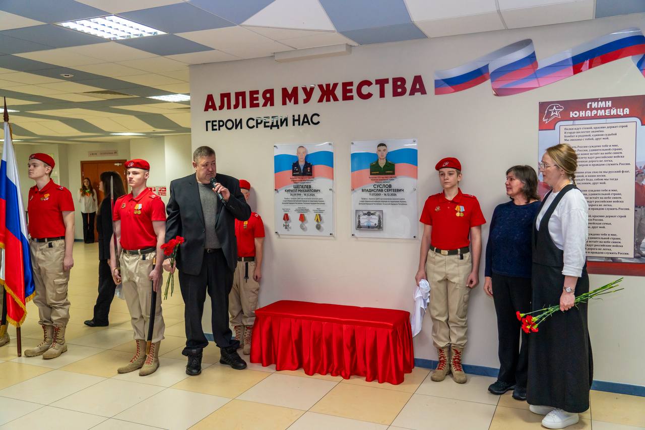 В школе №16 Академического района открыли памятные таблички двум выпускникам Кириллу Шепелеву и Владиславу Суслову, которые погибли во время службы в зоне специальной военной операции.